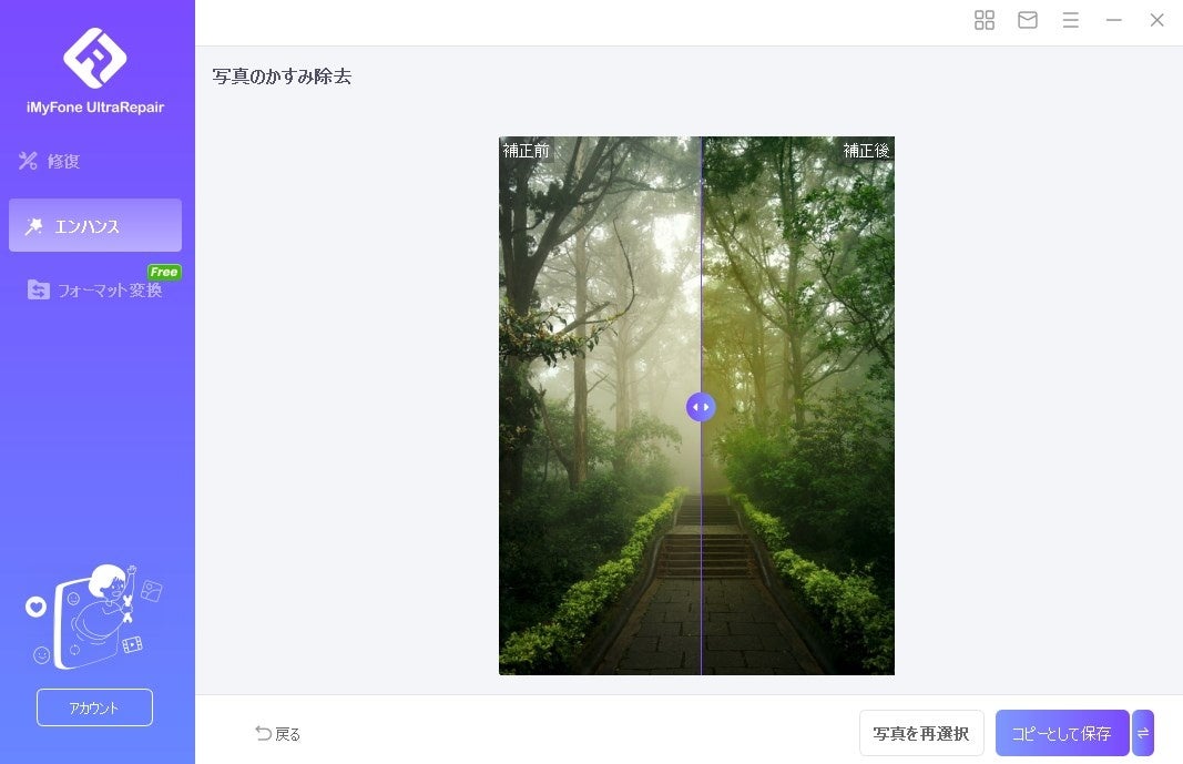UltraRepairは写真からかすみやノイズだけを取り除いて、画像を色鮮やかにして高画質化にします。