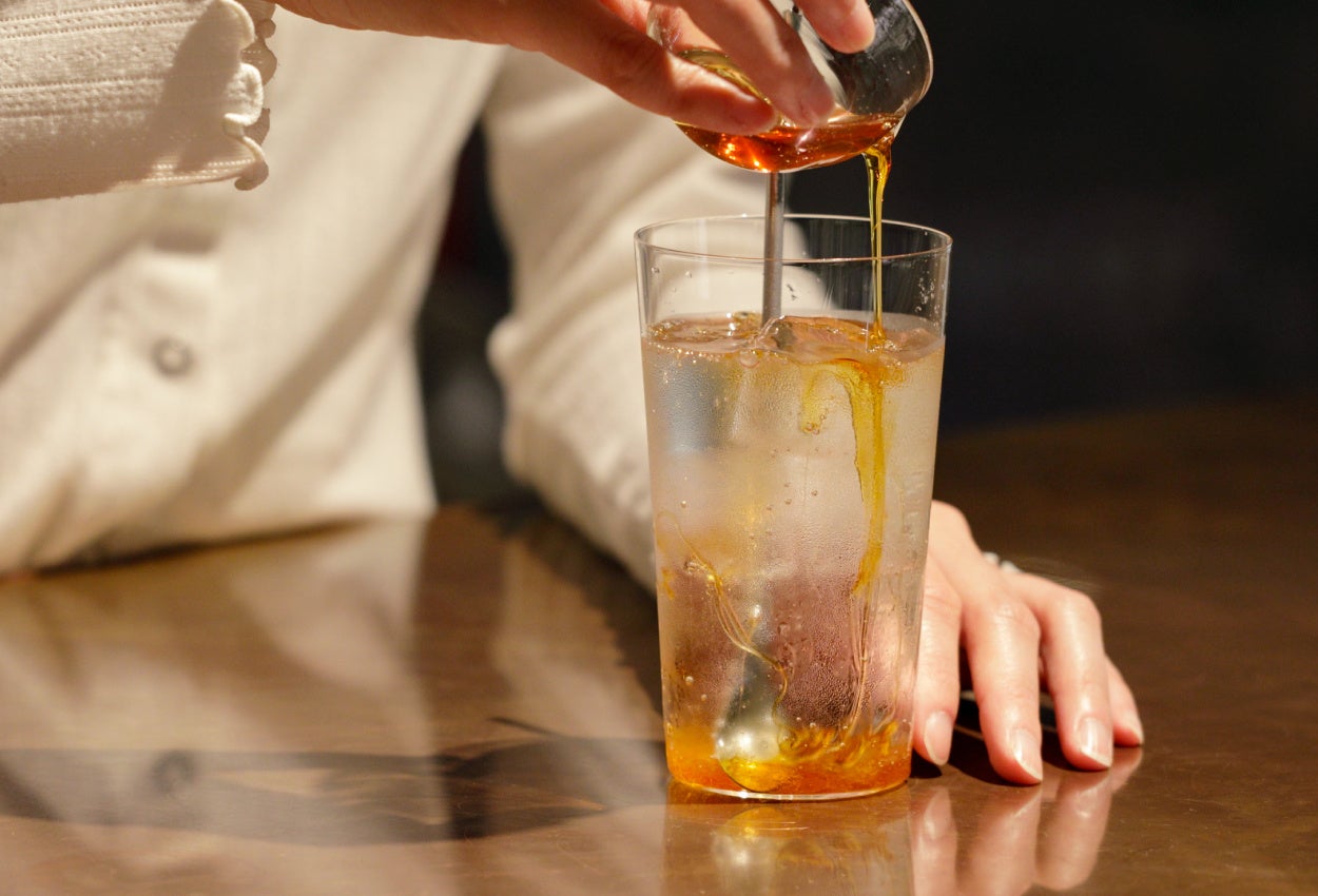 全6種類のフレーバーからお好きなHerbal Honeyを選び、その日の気分や体調に合わせてTamituソーダを目の前でお作りいたします。ソーダの中に混ざりあう黄金色のHerbal Honeyの様子をお楽しみください。