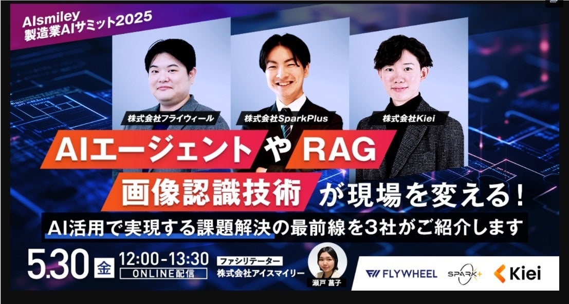 株式会社Kiei(本社:東京都千代田区、代表取締役:佐久間耀大)は、2025年5月30日(金)に開催されるオンラインイベント「製造業AIサミット2025」(主催:株式会社アイスマイリー)において、代表取締役の佐久間耀大が登壇することをお知らせいたします。