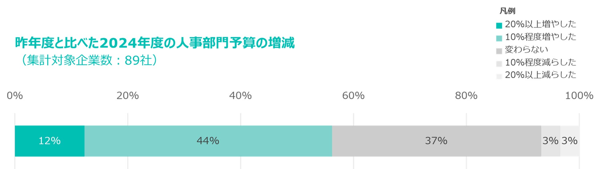 ・昨年度と比較して、半数以上の企業が2024年度の人事部門の予算を増やしている。