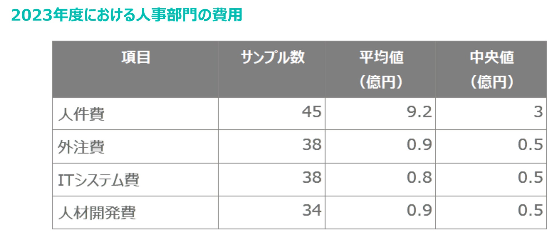(設問:所属している部門(人事部相当)において、2023年度の人件費/外注費/ITシステム費はどの程度かかりましたか。/年間)