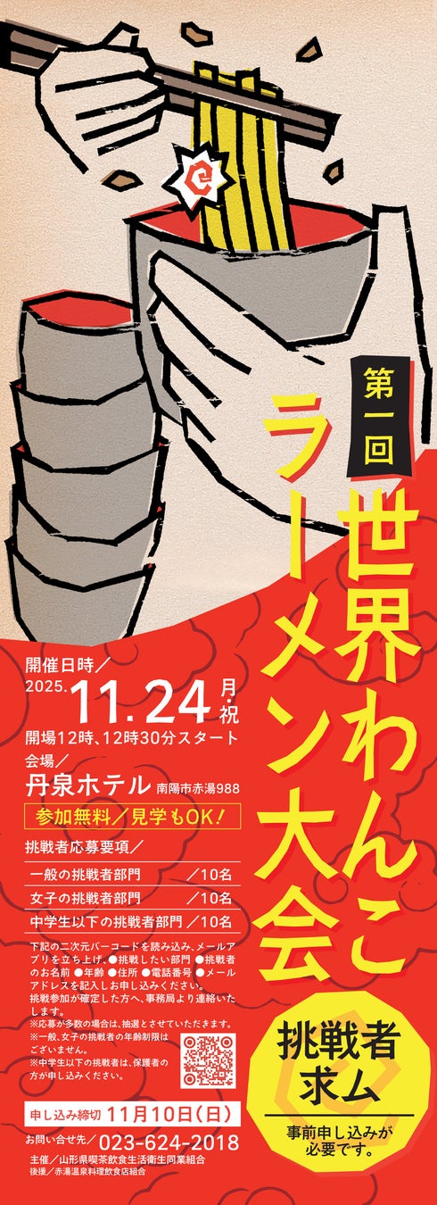南陽市役所ラーメン課は、11月1日(土)から令和8年1月31日(土)まで「なんようしのラーメンカードラリー」を実施するが、期間中11月24日(月祝)赤湯温泉丹泉ホテルで開催される「第1回世界わんこラーメン大会」とコラボし、ラーメンを軸とした地域活性化の一層の盛り上げを図ることとなった。