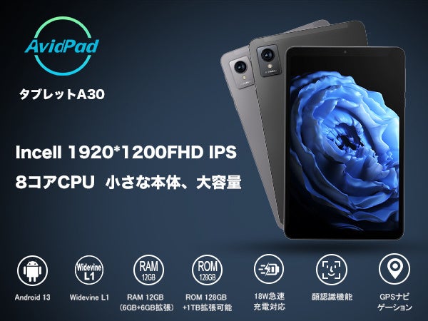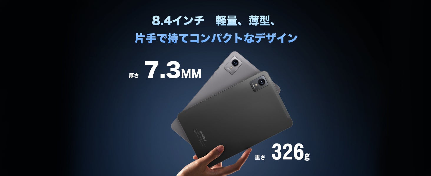 Avidpad A30は8.4インチ高解像度1920*1200フルHDのIPSディスプレイ搭載、鮮やかな色彩と178度の広視野角が特徴で、画像をくっきりと表示します。フルフィットIn-Cellテクノロジーを採用してタブレット全体は薄くて軽量で、持ち運びが便利です。