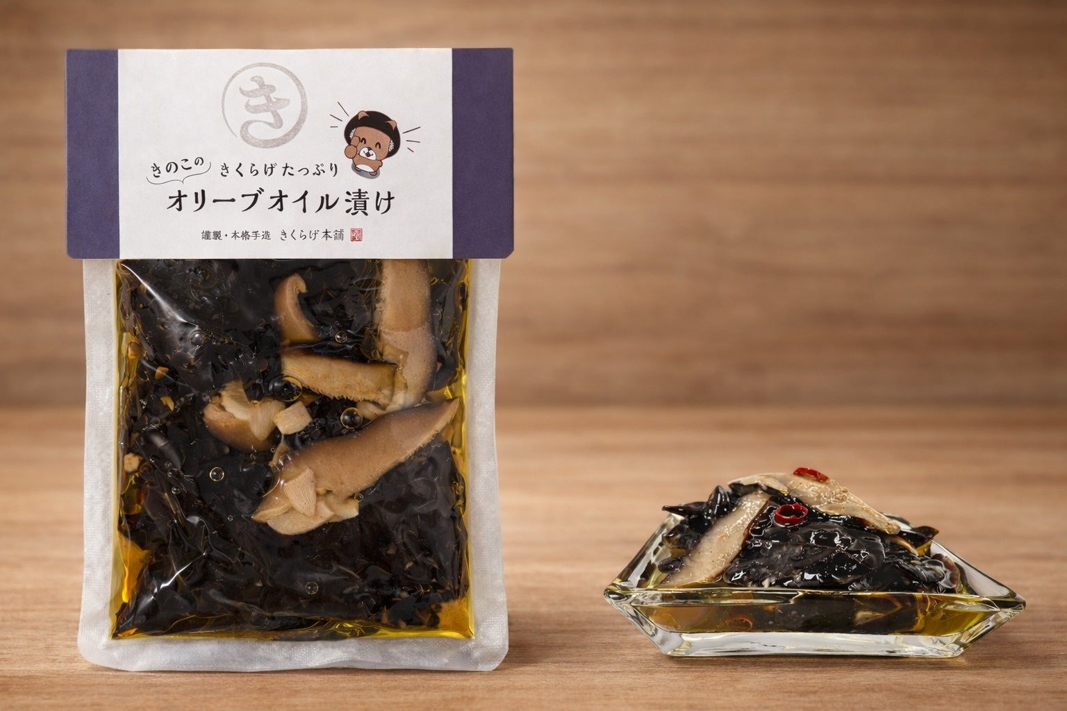 純国産無農薬の生きくらげを主役にしたオリーブオイル漬けです。ビタミンDや食物繊維が豊富で低カロリー。「菌活・腸活」で体の内側から美と健康をサポートします。そのままおつまみに、パスタやパン、アヒージョなど洋風アレンジも自在。美味しく食べて健康になれる、万能な一品です。