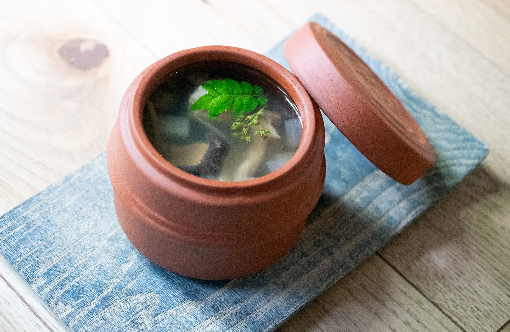 近江鶏とキノコの出汁をベースに、琵琶湖産すっぽんの旨味を加えた万能和漢スープ。豚肉や酒を使わず、湖の恵みをふんだんに詰め込みました。ラーメンやお粥のベースにはもちろん、そのままでも最後の一滴まで美味しく飲み干せます。体に優しい滋味深い味わいが、日々をやさしく整え、元気を届けます。