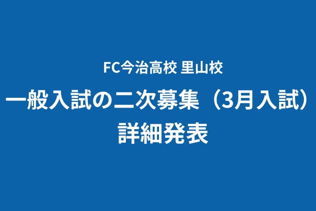 FC今治高校 里山校が一般入試の二次募集(3月入試) 詳細を発表
