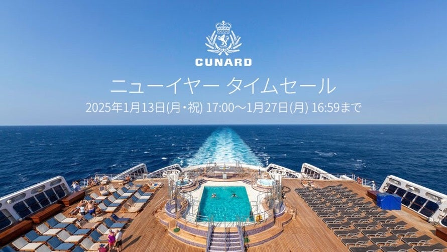 ラグジュアリーな船旅を提供しているキュナードは、2025年1月13日(月・祝)17:00から1月27日(月)16:59までの期間限定で、公式ウェブサイト限定『ニューイヤータイムセール』を開催いたします。