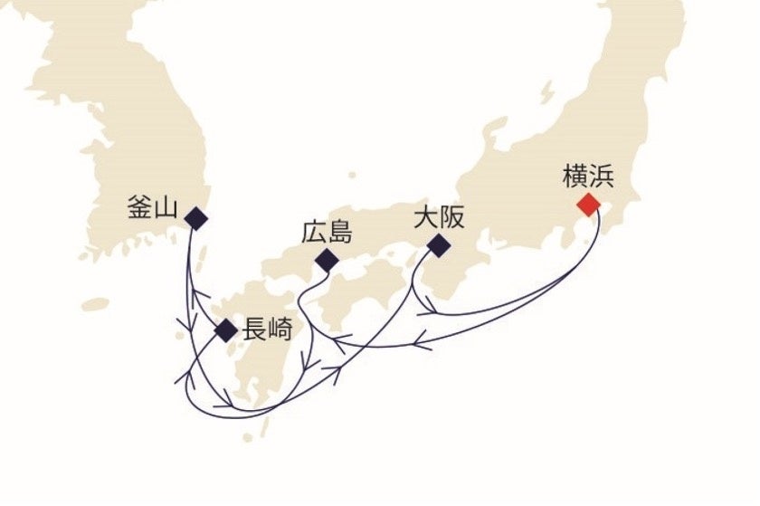 横浜発の10泊のクルーズ。異国情緒漂う長崎から歴史ある広島まで、日本の魅力をたっぷりご堪能いただけます。大阪では1泊停泊いたしますので、ナイトライフを楽しんだり近隣県まで足を延ばしたりすることも可能です。