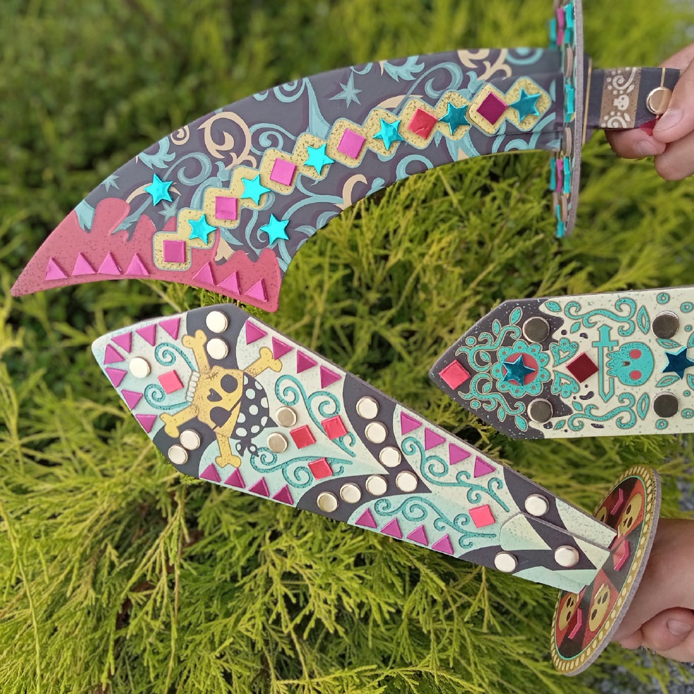 「DIY ライク ア パイレーツ」は、光沢のあるシールを貼ることで、まるで宝石がちりばめたような剣をデコレーションできます。