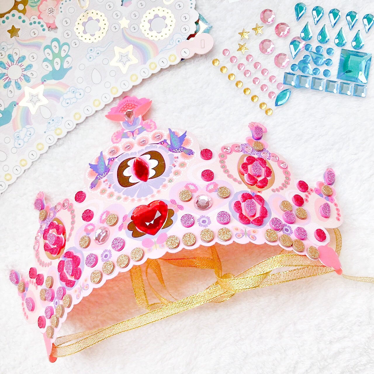 「DIY ライク プリンセス」は、4つのティアラをシールでデコレーションします。カラフルで立体的なシールを使って、オリジナルのティアラを作ることができます。