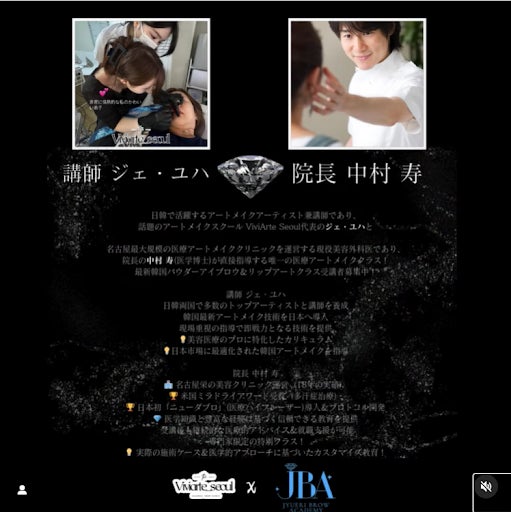 本クラスでは、韓国のアートメイクスクール「VIVIARTE SEOUL」の代表であるジェ・ユハ氏と、THE CLINIC NAGOYAの院長・中村寿医師(医学博士)が直接指導を行います。