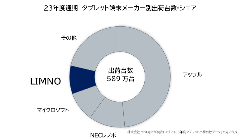 株式会社LIMNO(本社:鳥取県鳥取市、代表取締役社長:木村裕一)は、ICT市場調査コンサルティングの株式会社MM総研(略称MMRI、東京都港区、関口和一所長)が2024年6月12日に発表した「2023年度タブレット出荷台数データ」において、9.1%のシェアを獲得し、第4位となりました。