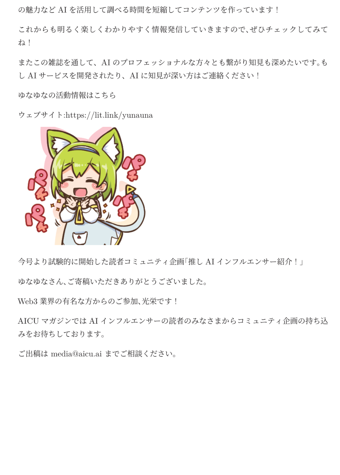 今号より試験的に開始した読者コミュニティ企画「推しAIインフルエンサー紹介!」です。