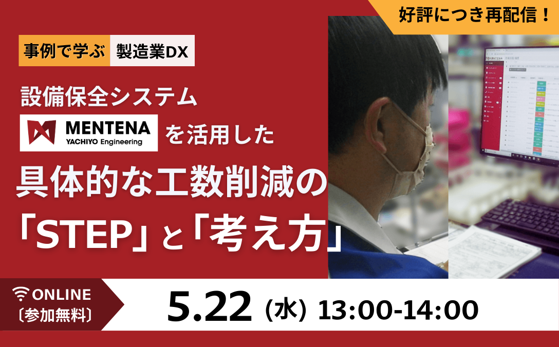 【ご好評につき再配信!】設備保全システム「MENTENA」を活用した具体的な工数削減の「STEP」と「考え方」オンラインセミナーを5/22(水)に開催