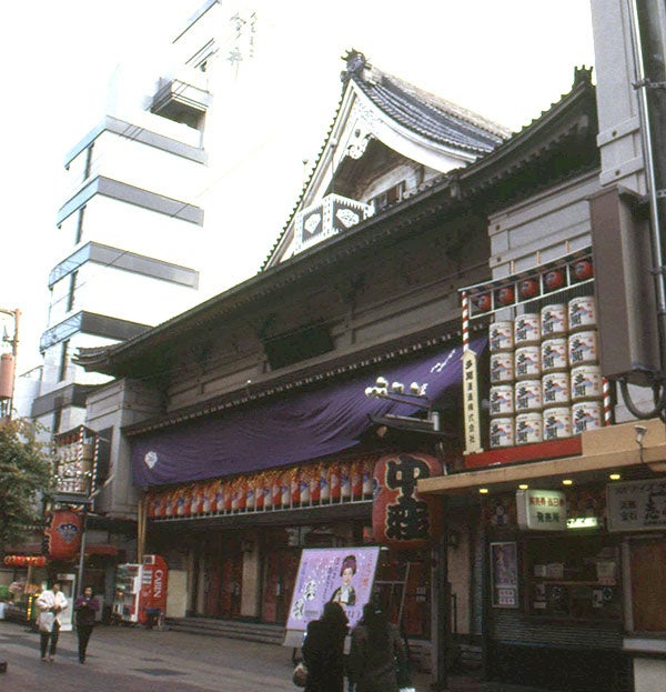 中座は、承応元年(1652)に塩屋九郎右衛門が開いた芝居小屋「中の芝居」を受け継ぐ由緒のある劇場で、初世中村鴈治郎(なかむら がんじろう)らが活躍して栄えました。戦時中の空襲で焼失しましたが、戦後すぐに再建されます。これまで何度も建物を失った経験から鉄骨鉄筋コンクリートによる耐火構造となり、戦後の道頓堀の新たな名所となりましたが、平成11年(1999)に閉館・解体されました。この壁片は、伝統的な劇場建築の近代化を象徴する一部といえます。現在、跡地に立つ中座くいだおれビルには、芝居の評判が上がるとされる「道頓堀狸(たぬき)」が祀られています。