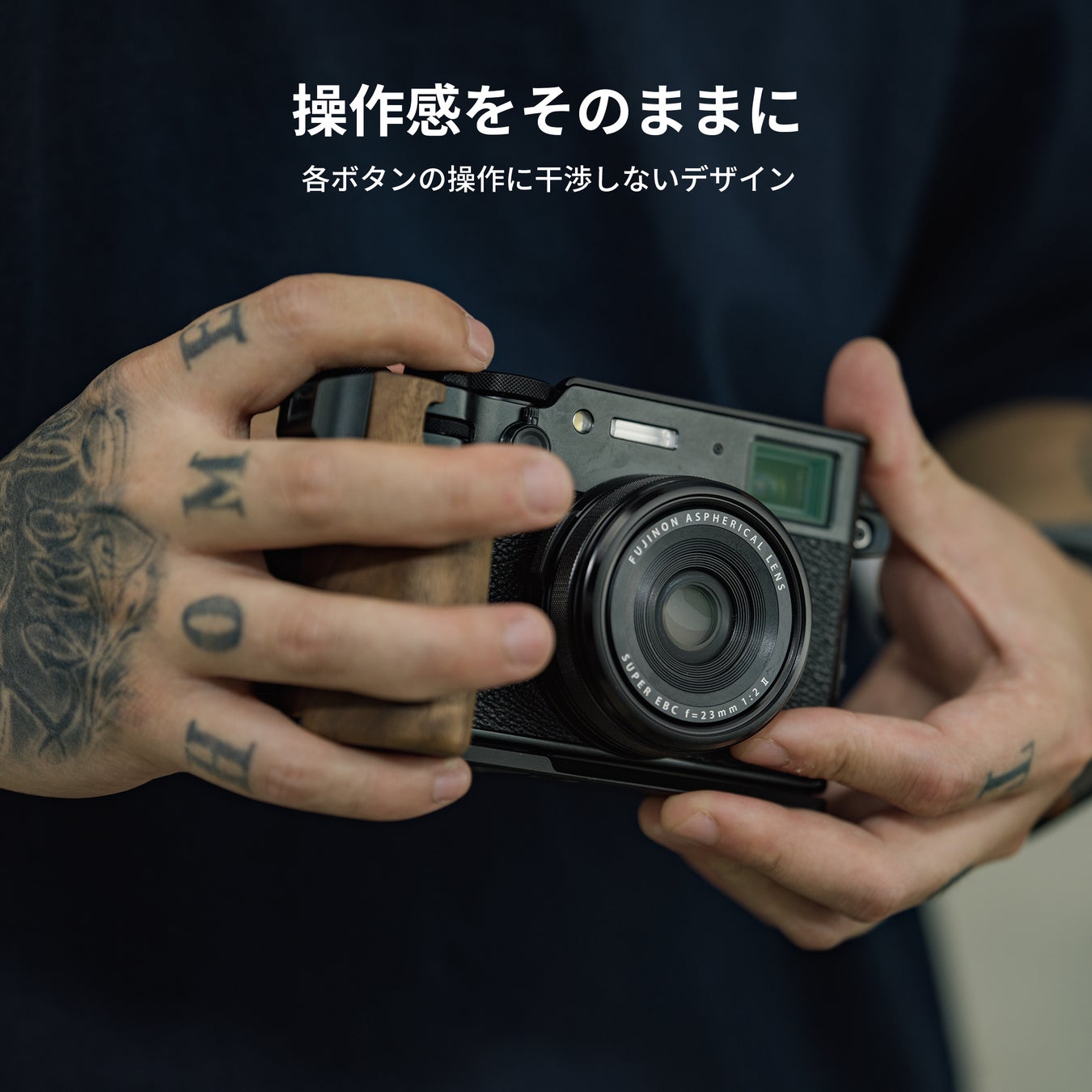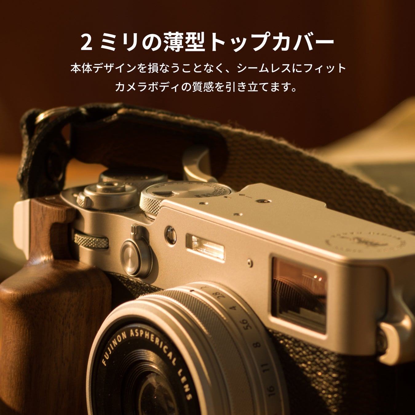 わずか2 ミリの薄型トップカバーが本体のデザインを影響しないうちにもどのカメラボディの質感も感じられ、CNC精密加工によるトップカバーはカメラボディにシームレスにフィットする。
