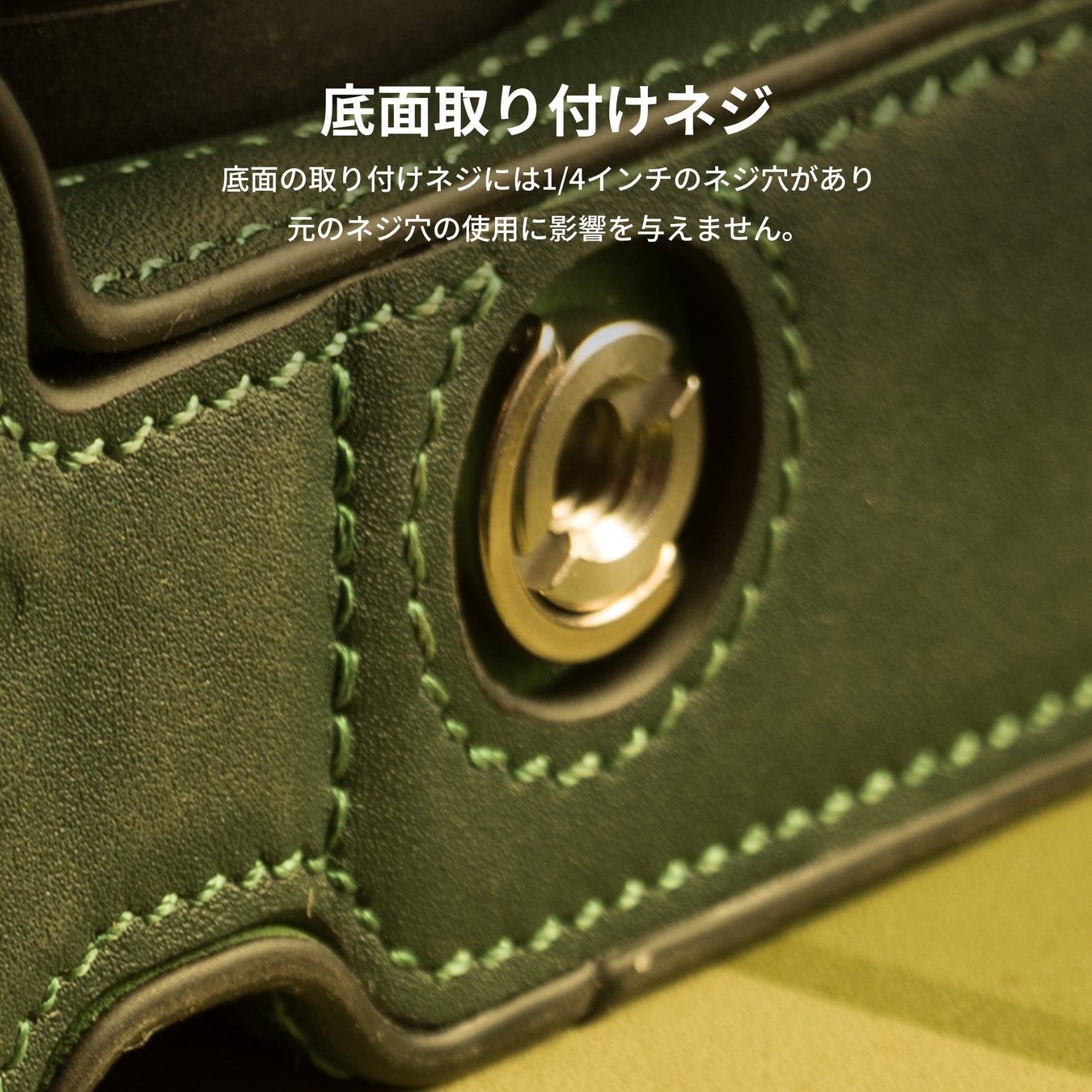 クラシックカメラのカラーを再現し、職人による手作りの高品質な牛革保護ケースを採用、洗練されたデザインが、カメラにしっかり保護する上に上質な触感を与える。