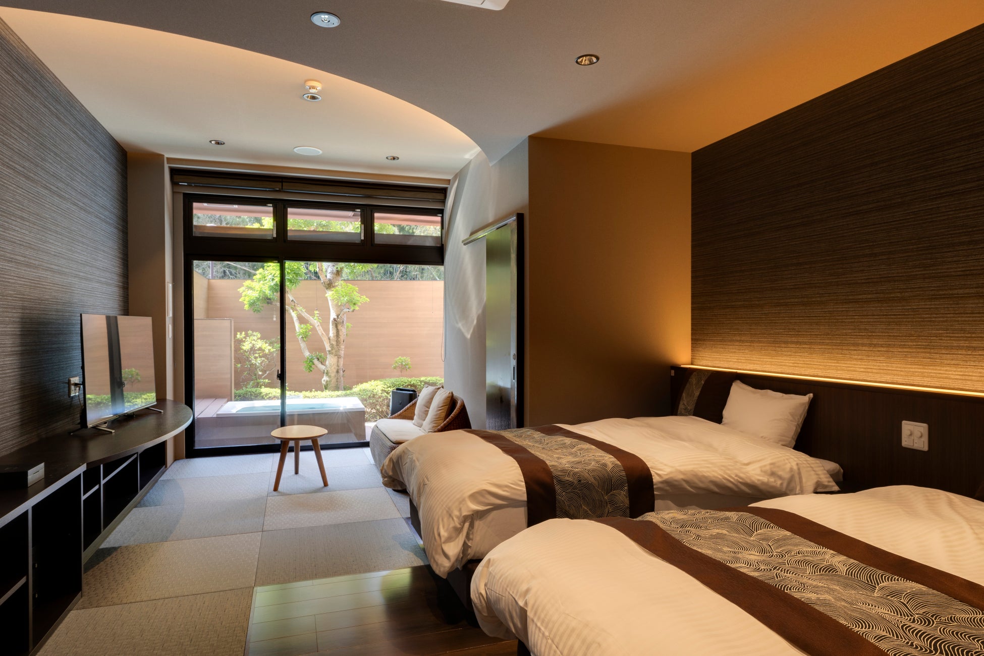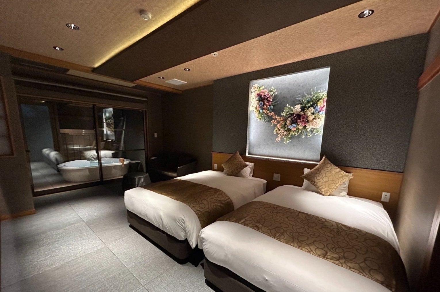 2024年7月リニューアルのツインベッドに琉球畳の露天風呂付き和モダン客室。カーネーションとウェルカムカードでお迎え♪シモンズ製ベッドやReFa製ドライヤー、客室専用コーヒーマシンも完備。硫黄成分を多く含む那須の源泉掛け流しの大浴場、露天風呂も利用可。ご夕食はお食事処で乾杯ドリンクと人気の創作会席膳に牛ステーキをお付けしたボリュームメニュー。お母様との特別な日に特別な時間を提供する"お宿ステイ"を是非お楽しみいただけたらと思います。