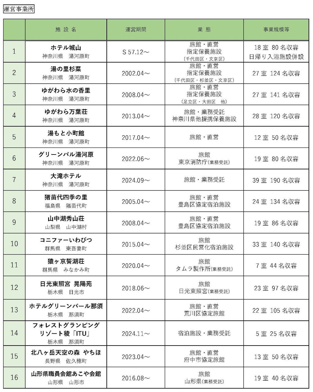 主な事業内容 旅館経営・宿泊施設運営業務委託・レストラン・貸切バス事業・旅行業・