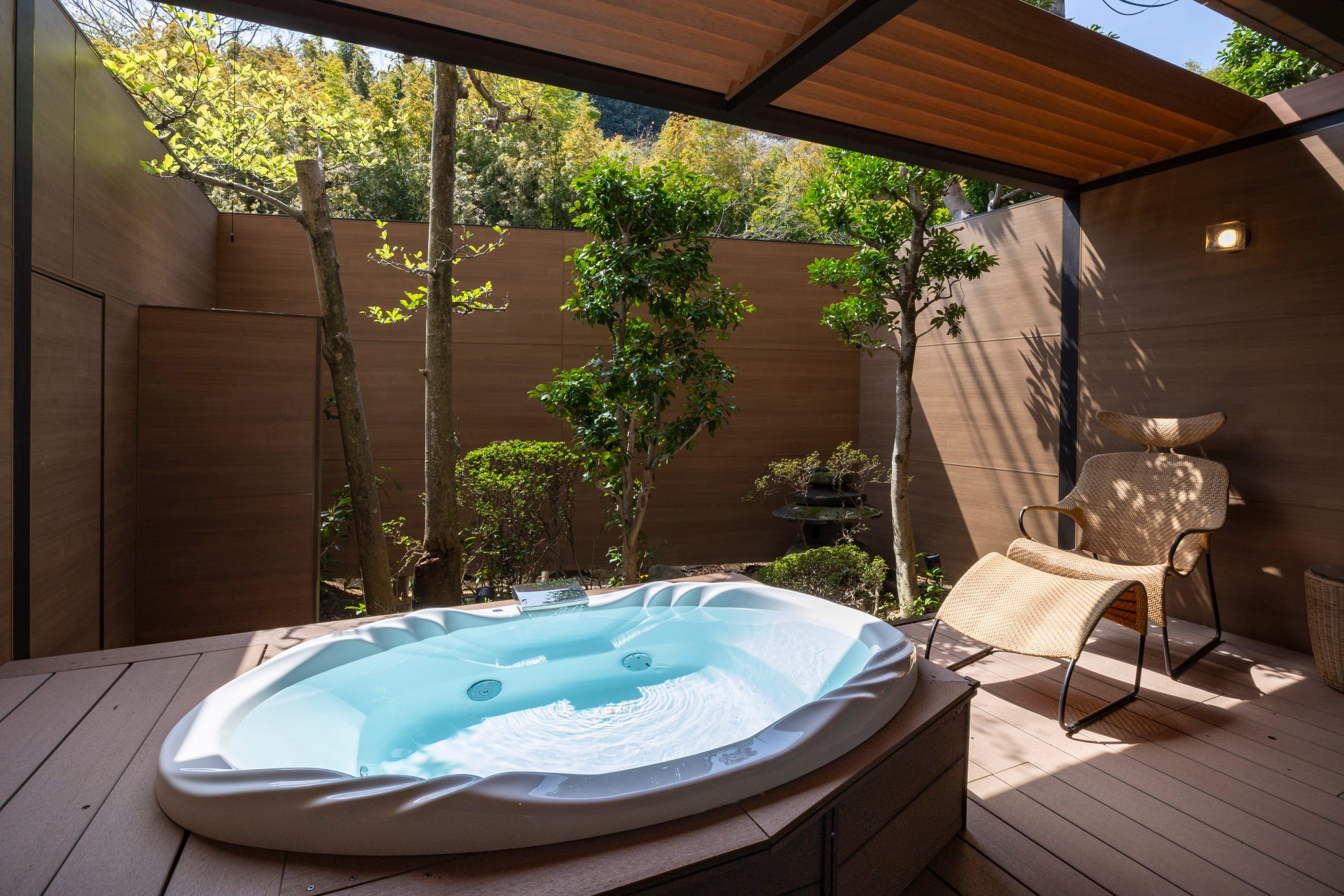 2024年3月リニューアルの5部屋限定の露天風呂付き和モダン客室。カーネーションとウェルカムカードでお迎え♪シモンズ製ベッドにReFa製ドライヤーやヘアアイロン、客室専用コーヒーマシンも完備。ご夕食は半個室のプライベート空間で、乾杯ドリンクと人気の創作会席膳に牛ステーキをお付けしたボリュームメニュー。お母様の思い出に残るひとときを、特別感のあるこの"お宿ステイ"で是非体験してみてください!