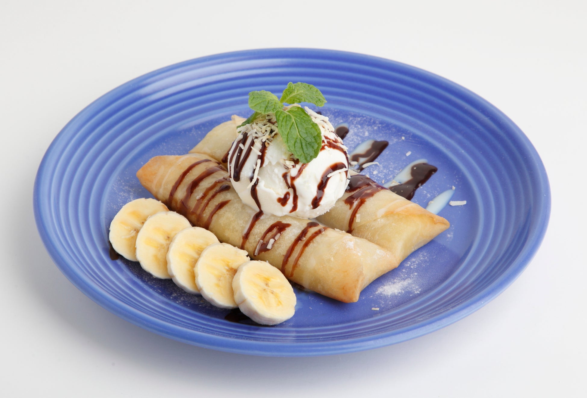 甘熟王バナナ揚げ春巻きココナッツアイスのせ