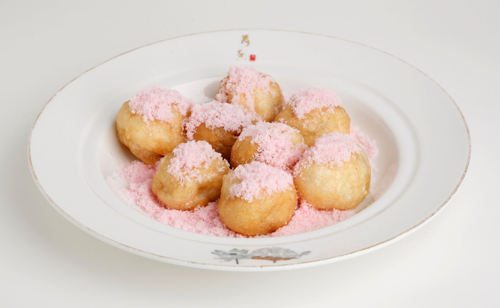 揚げました。ピンクに色付けした砂糖をまぶした、見た目も楽しいデザートです。