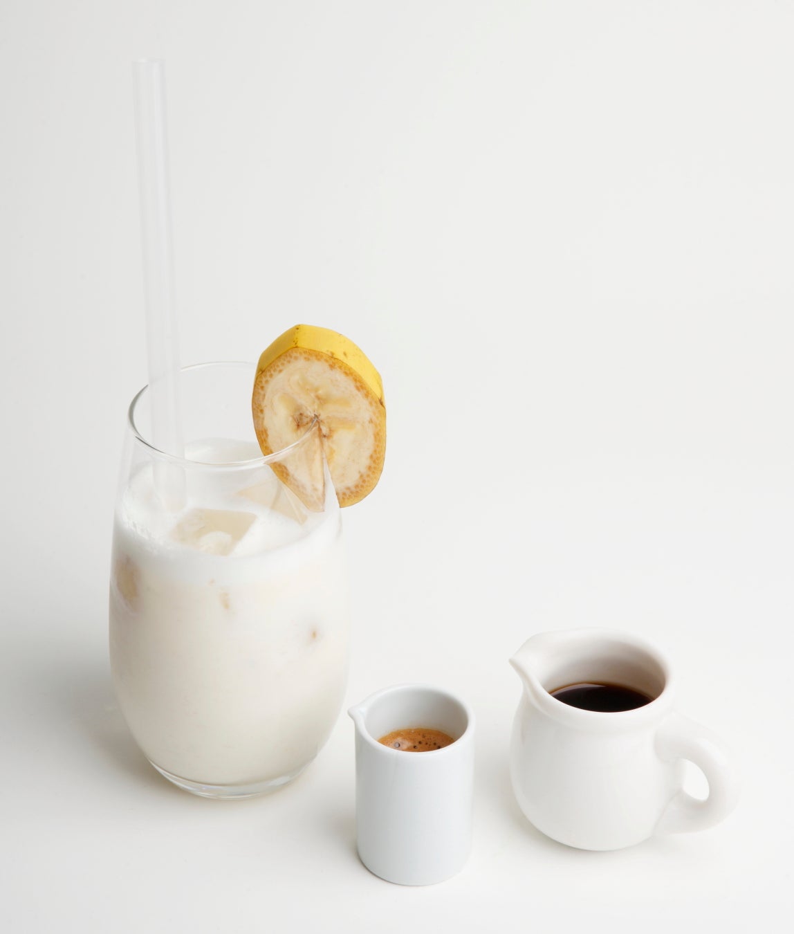 甘熟王バナナをなめらかなスムージーに仕上げました。エスプレッソ、またはカルーア(コーヒー