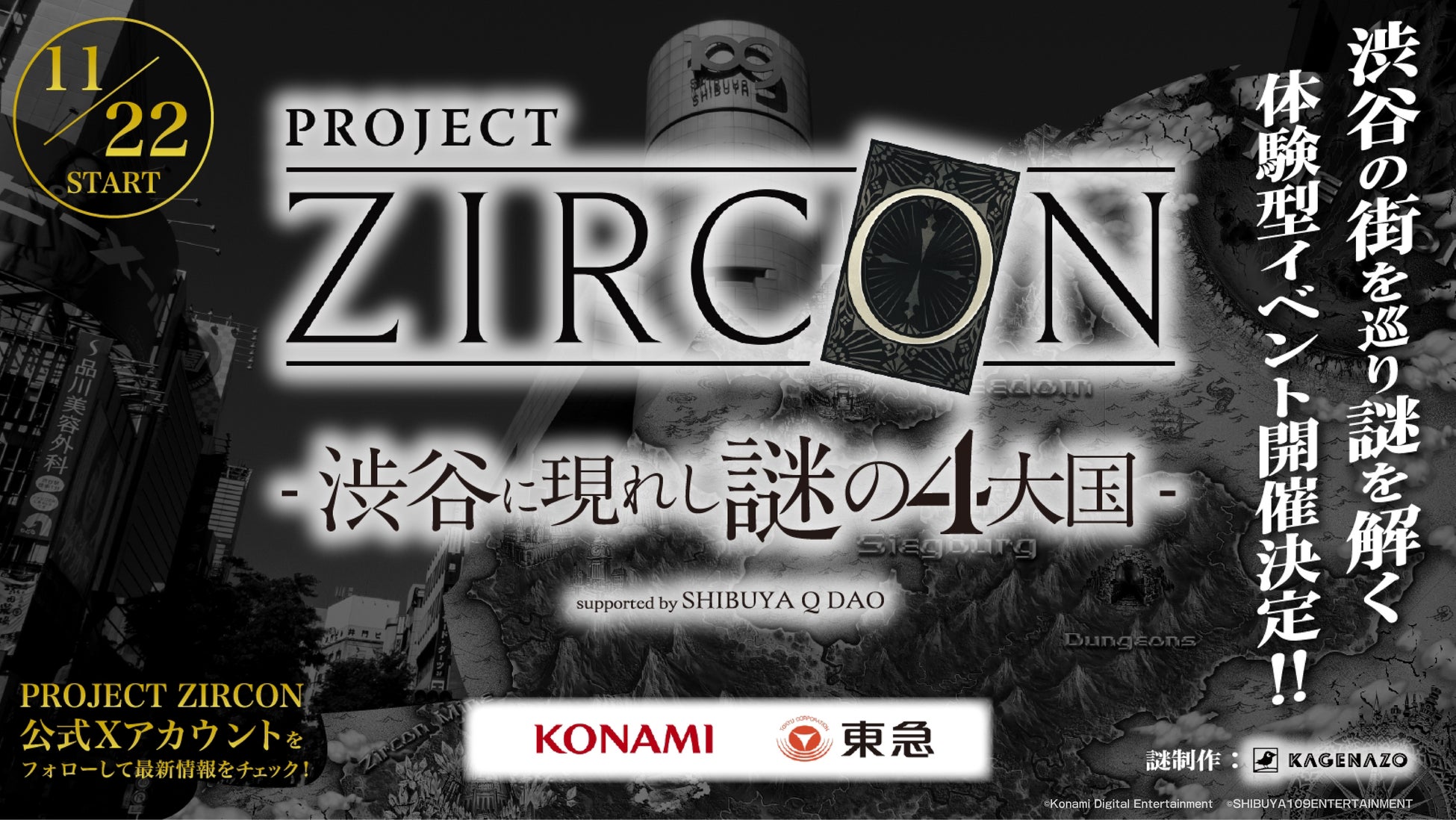 「謎解き×地域活性」をコンセプトに、日本中の地域に謎解きを仕掛け地域活性に貢献するクリエイティブ集団『KAGENAZO(運営:FUN SPIRITS株式会社、本社:東京都千代田区、代表取締役:日景太郎)』は、「PROJECT ZIRCON」(運営:株式会社コナミデジタルエンタテインメント、本社:東京都中央区、代表取締役:早川英樹)と「SHIBUYA Q DAO(運営:東急株式会社、本社:東京都渋谷区、代表取締役:堀江正博)が主催する渋谷謎解きイベント『PROJECT ZIRCON –渋谷に現れし謎の4大国- suported by SHIBUYA Q DAO』にて企画制作を担当しました。