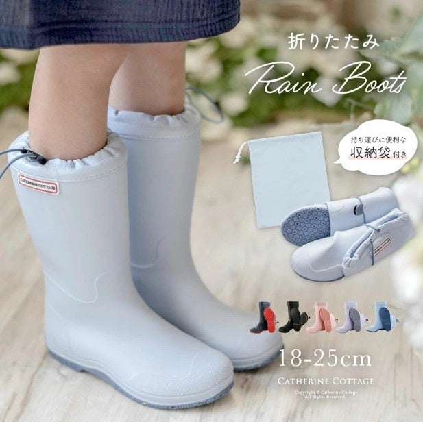 【累計販売個数5万足超】キャサリンコテージの「丸めて持ち運べる」キッズ折りたたみレインブーツが予期せぬメリット多数で大人気アイテムに