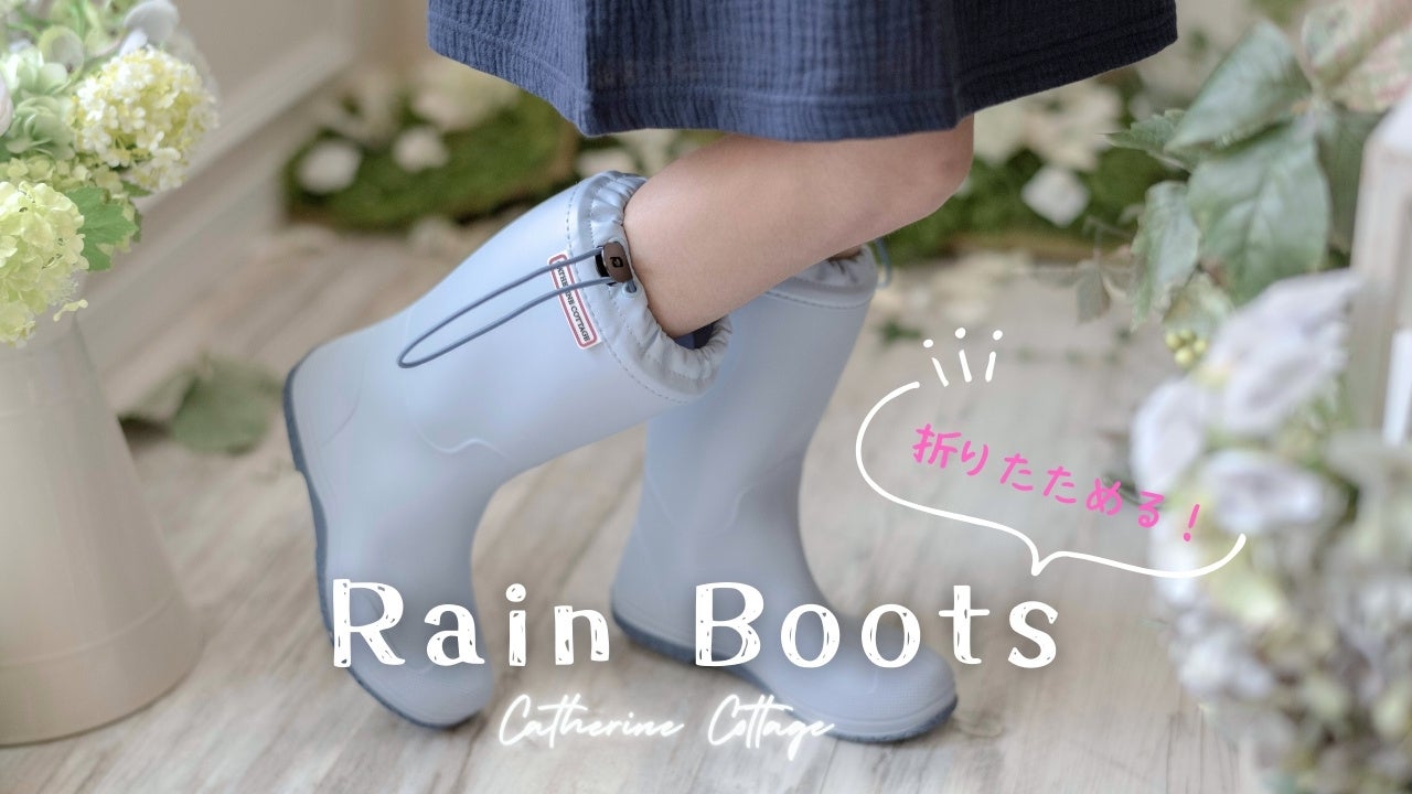 2019年発売のキャサリンコテージオリジナルキッズ折りたたみ長靴。キャンプや学校行事での備えに便利!と発売したところ、実際その他にもメリットがたくさん!と、今やリピーターさんもたくさんいらっしゃいます