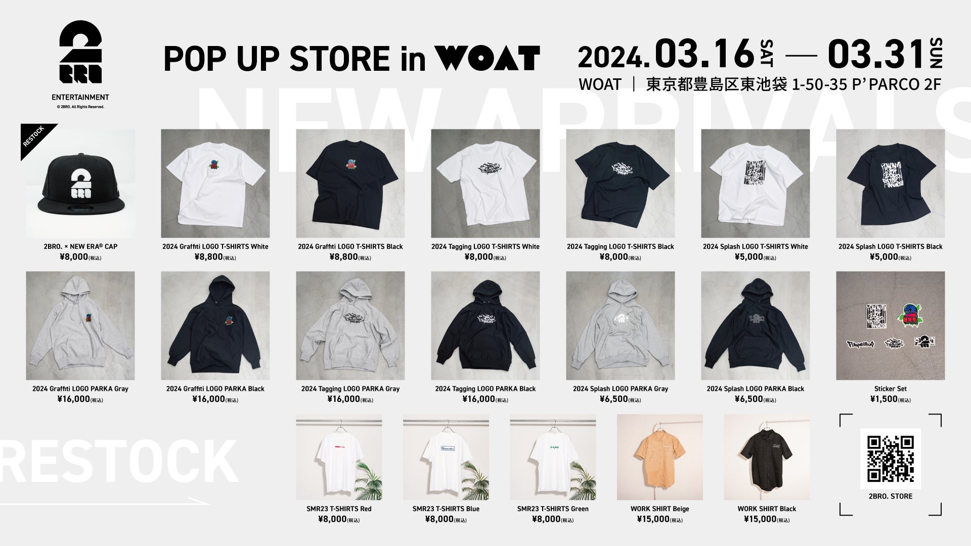 ポップアップストアは3月16日~17日は入場制限がありますが、18日からは一般入場が可能です。公式オンラインショップ『2BRO.STORE』では、17日12時から販売開始!