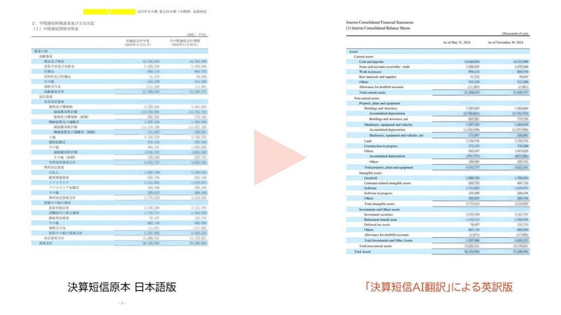 (注)XBRLデータをもとに翻訳しますが、TDnetシステムでXBRLデータを作成する場合は開示前にXBRLデータの取得ができないため、開示後の英訳になりますことにご注意ください。 -