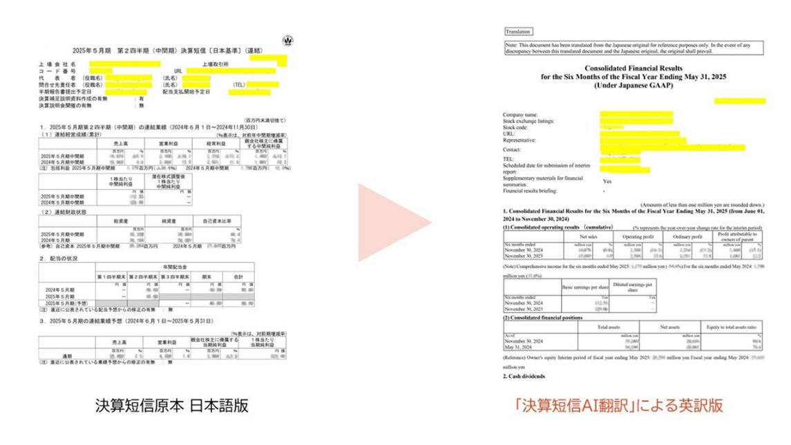 みんせつでは、翻訳業務にかかる時間とコストを削減しIR担当者が投資家とのコミュニケーションにより集中できる環境を整えるため、生成AI技術を活用した「決算短信AI翻訳」サービスを提供しております。