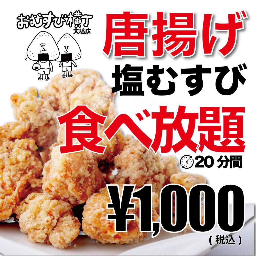 " 唐揚げと塩むすび食べ放題 " ¥1000(税込)