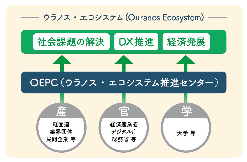 ※ウラノス・エコシステム:ギリシャ神話の天空の神「ウラノス」に由来。産学官のさまざまなプレーヤーの協調によってデータ、システム、サービスが連携されることを目指し、日本の産業全体が見渡せるようなイメージを表している。