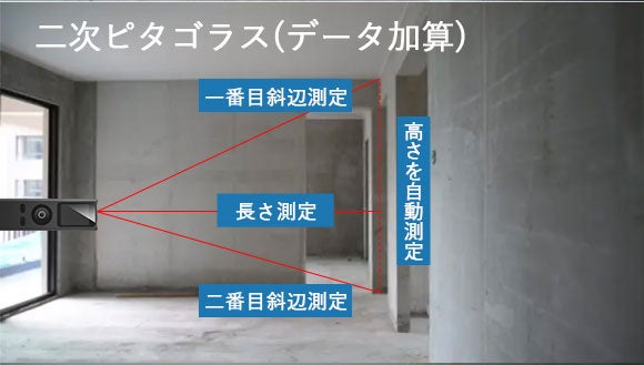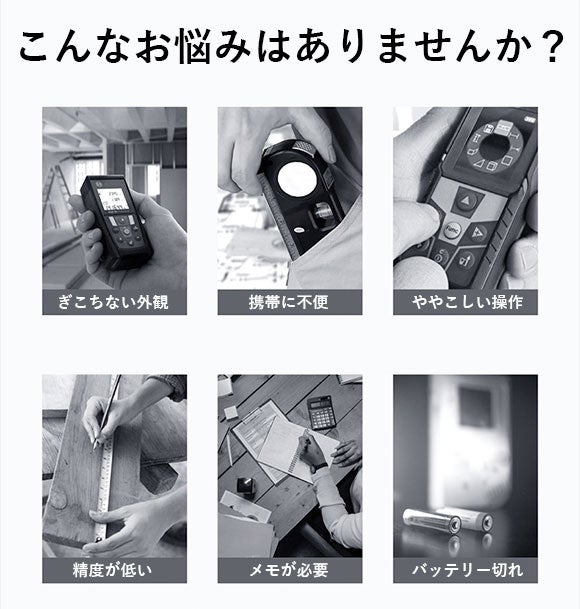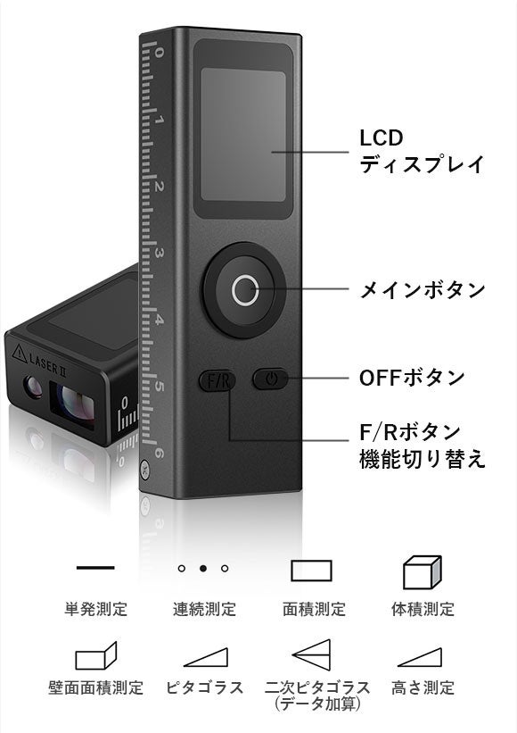 レーザー距離測定技術を採用しており、ボタンを押すだけで、長さ・面積・体積などのデータをリアルタイムで測定できます。