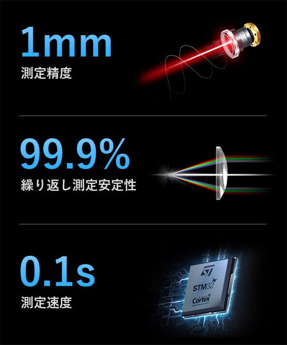 【±1mmの高精度・8種類の測定モード・Type-C充電対応】