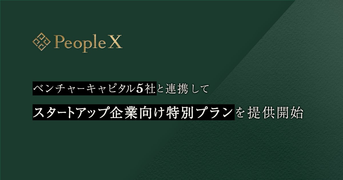 エンプロイーサクセス事業を推進する株式会社PeopleX(本社:東京都渋谷区、 代表取締役CEO:橘 大地、以下:当社)は、ベンチャーキャピタル(VC)5社と連携し、投資先企業を対象に、エンプロイーサクセスHRプラットフォーム「PeopleWork」のスタートアップ企業向け特別プランを提供開始したことをお知らせいたします。