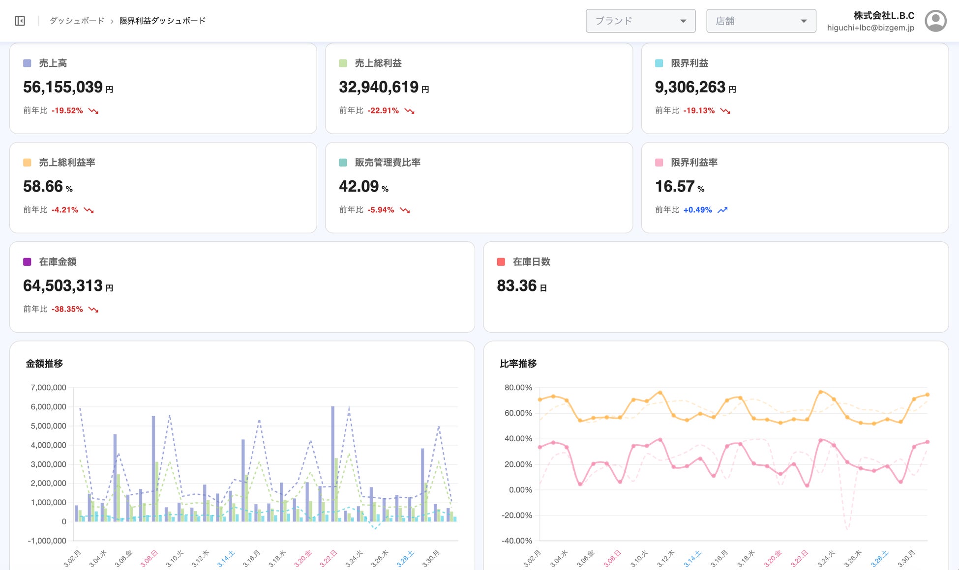 ・ビジネスレポート(セッション数・ページビュー・カート追加率等)