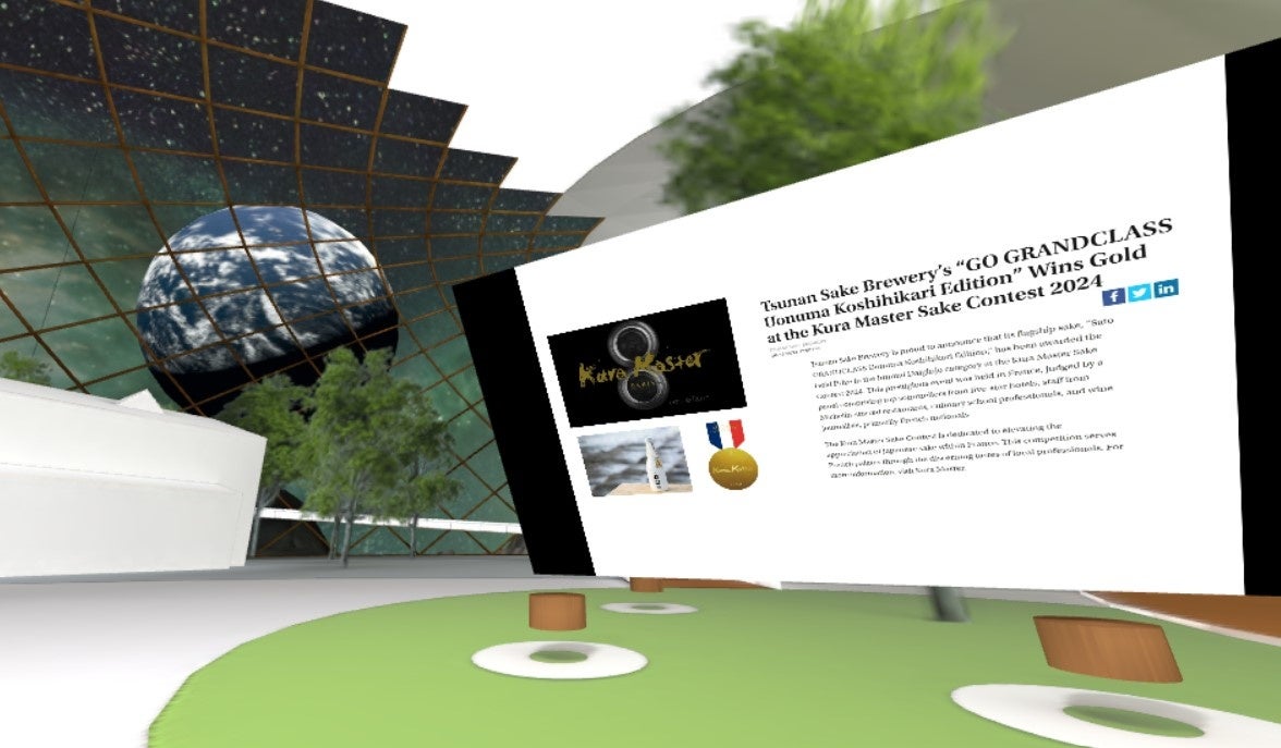 また、津南醸造が手掛ける「郷(GO)GRANDCLASS 魚沼コシヒカリEdition」について国境を越えたプレゼンテーションを行いました。「月面酒蔵 - Lunar Brewery -」内のスライドプレゼンテーションやtonari(トナリ)のシステムによる東京やマレーシアとのリアルタイム接続も行い、参加者にとってメタバース空間の可能性ならびに実用性を体験することができる場となりました。