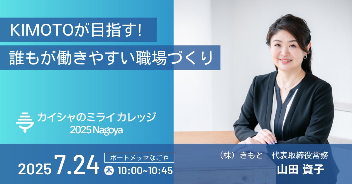 株式会社きもと(本社:三重県いなべ市、代表取締役社長:小林正一)は、2025年7月24日(木)に名古屋で開催されるセミナーイベント「カイシャのミライ カレッジ2025 Nagoya」に登壇いたします。