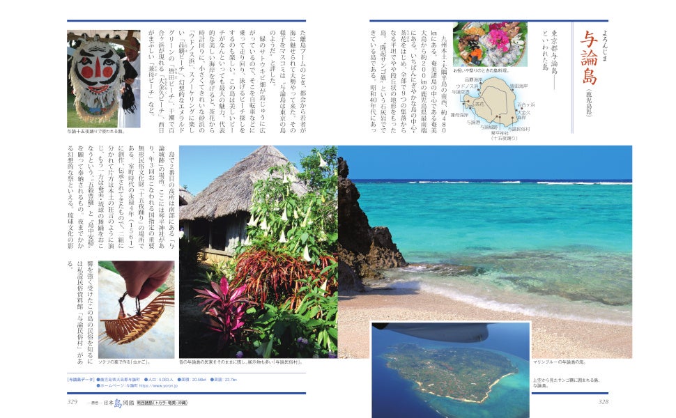 改訂第3版では、島の情報を最新データに更新、日本に400以上ある人の住む島【有人島】をすべて紹介。日本の島には、それぞれ、その島固有の自然と伝統・文化が、今なお生き続けています。本書ではすべての島に、その島の特徴を物語る写真と解説を掲載。写真家である著者自らが島に赴き撮影・執筆。さらに、本書は島のデータブックとしてもすぐれており、人口・面積などの島の基本データに略地図、島名からも位置からも検索できる工夫がされています。過去の類書にはない、島ファン必携、唯一無二の一冊です。