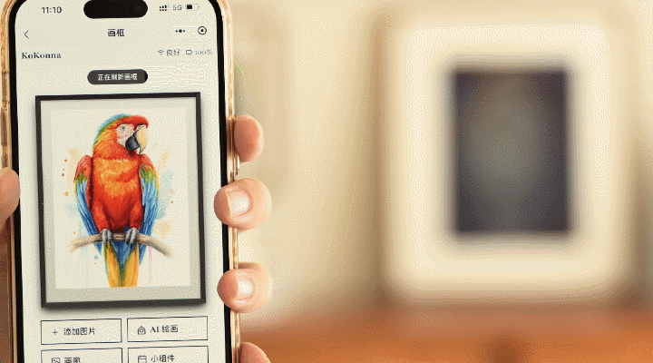 「AI E-ink Frame "Kokonna"」は、専用スマホアプリをダウンロードすることで、スマホに保存している写真や画像をWi-Fi経由で簡単送信。フレームを取り外すことなく、手軽にアートの入れ替えができます。