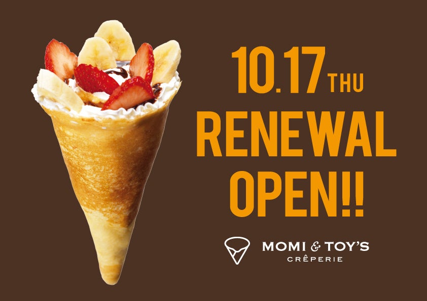 株式会社 JFLA ホールディングス(本社:東京都中央区、代表取締役社長:檜垣周作)の子会社である株式会社アルテゴ(本社:東京都中央区、代表取締役社長:檜垣周作)は、クレープ専門店「MOMI&TOY'S(モミアンドトイズ)浦和パルコ店」を2024年10月17日(木)リニューアルオープンいたします。リニューアルオープンを記念して、1週間限定でバナナチョコホイップを390円(税込)で販売いたします。