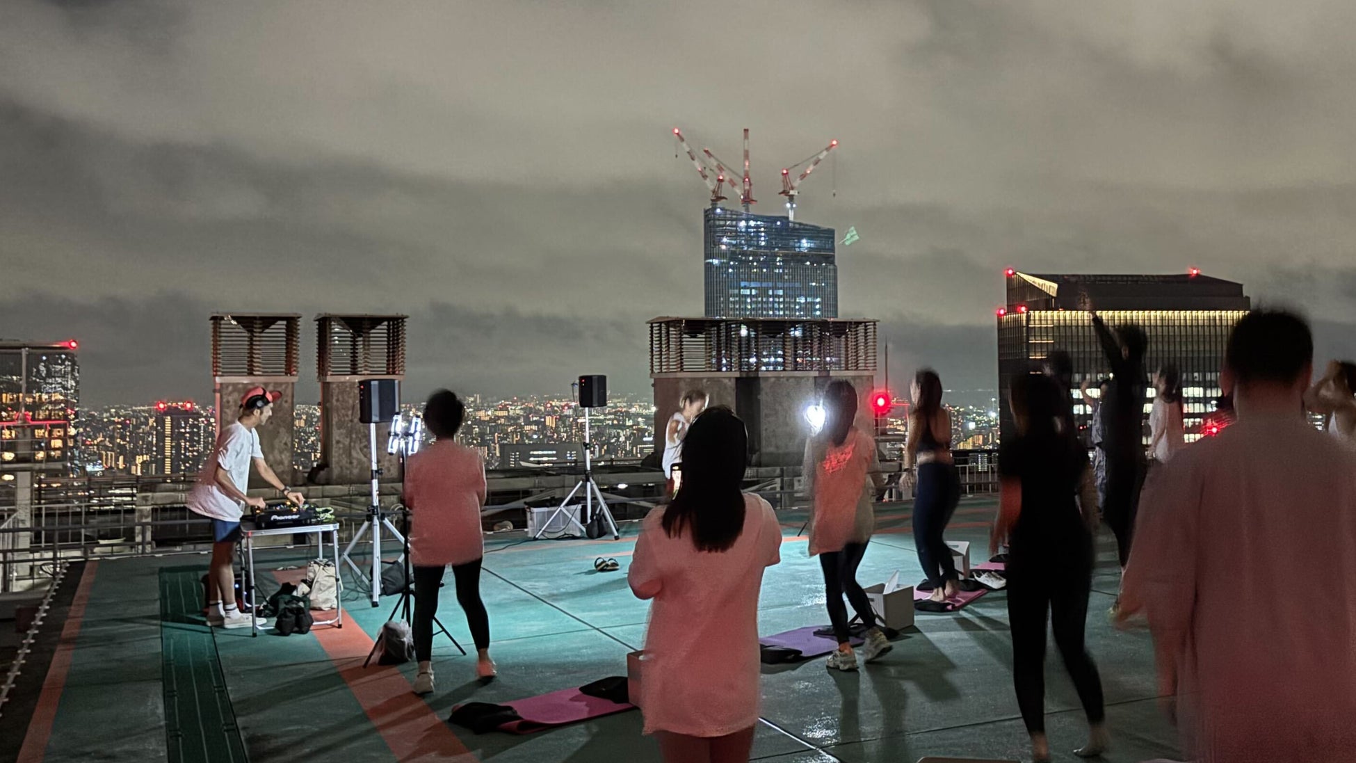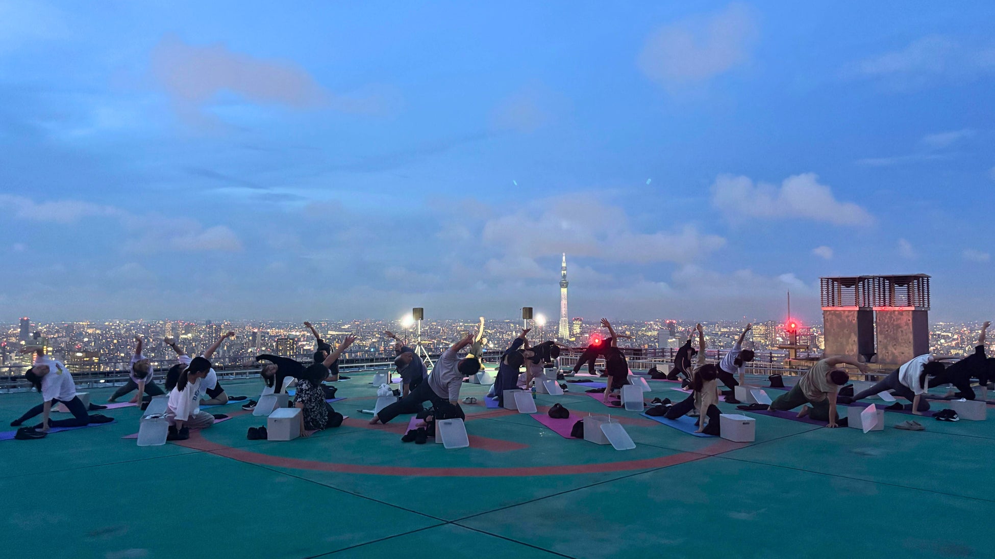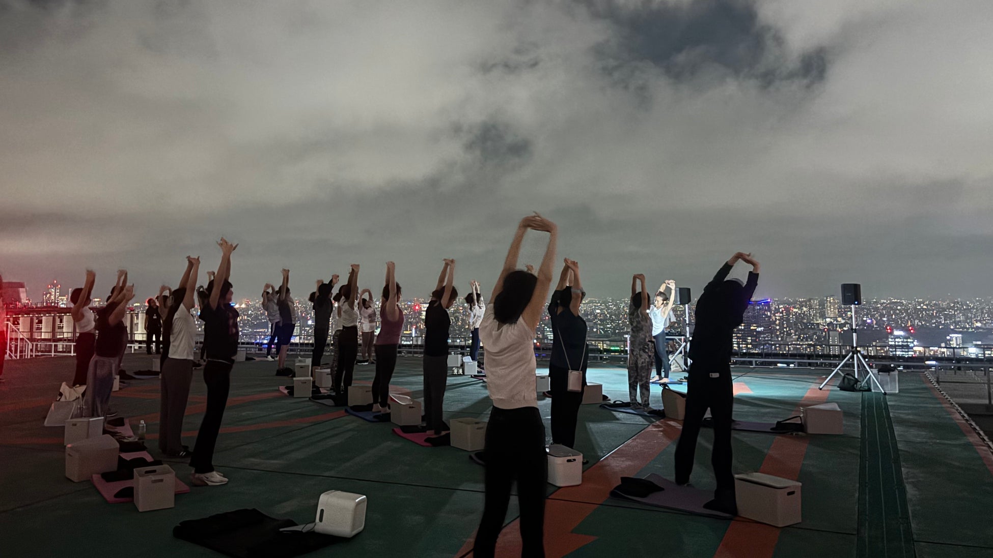 ヨガ講師による充実のプログラムは、夜景や夜の空を仰ぐ場面も多く、自身と向き合いながら体をゆったり動かしてリラックスし、就業後のリフレッシュになったのではないでしょうか。