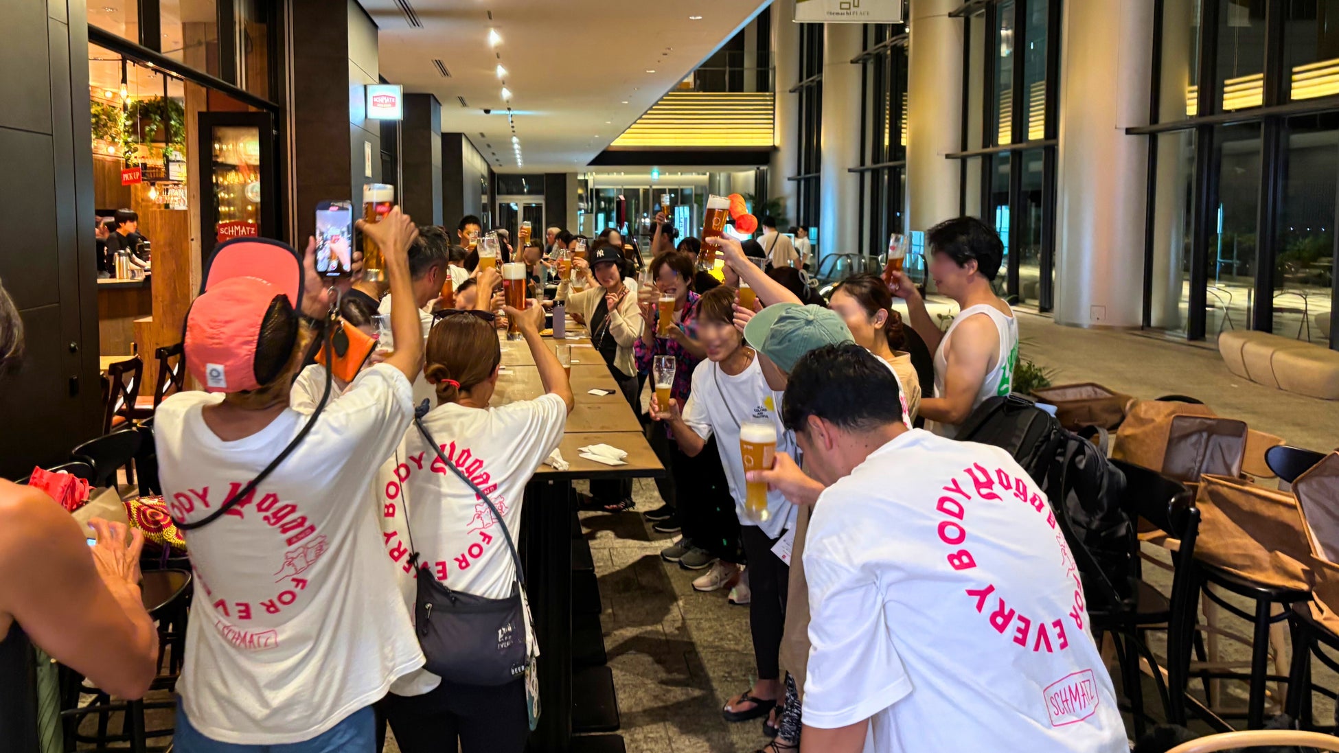 DJヨガ終了後はウエストタワー1FのSCHMATZ店舗にてクラフトビール交流会を実施しました。全員で乾杯!SCHMATZスタッフによる豪華景品をかけたビンゴ大会も開催され、大変盛り上がりを見せていました。