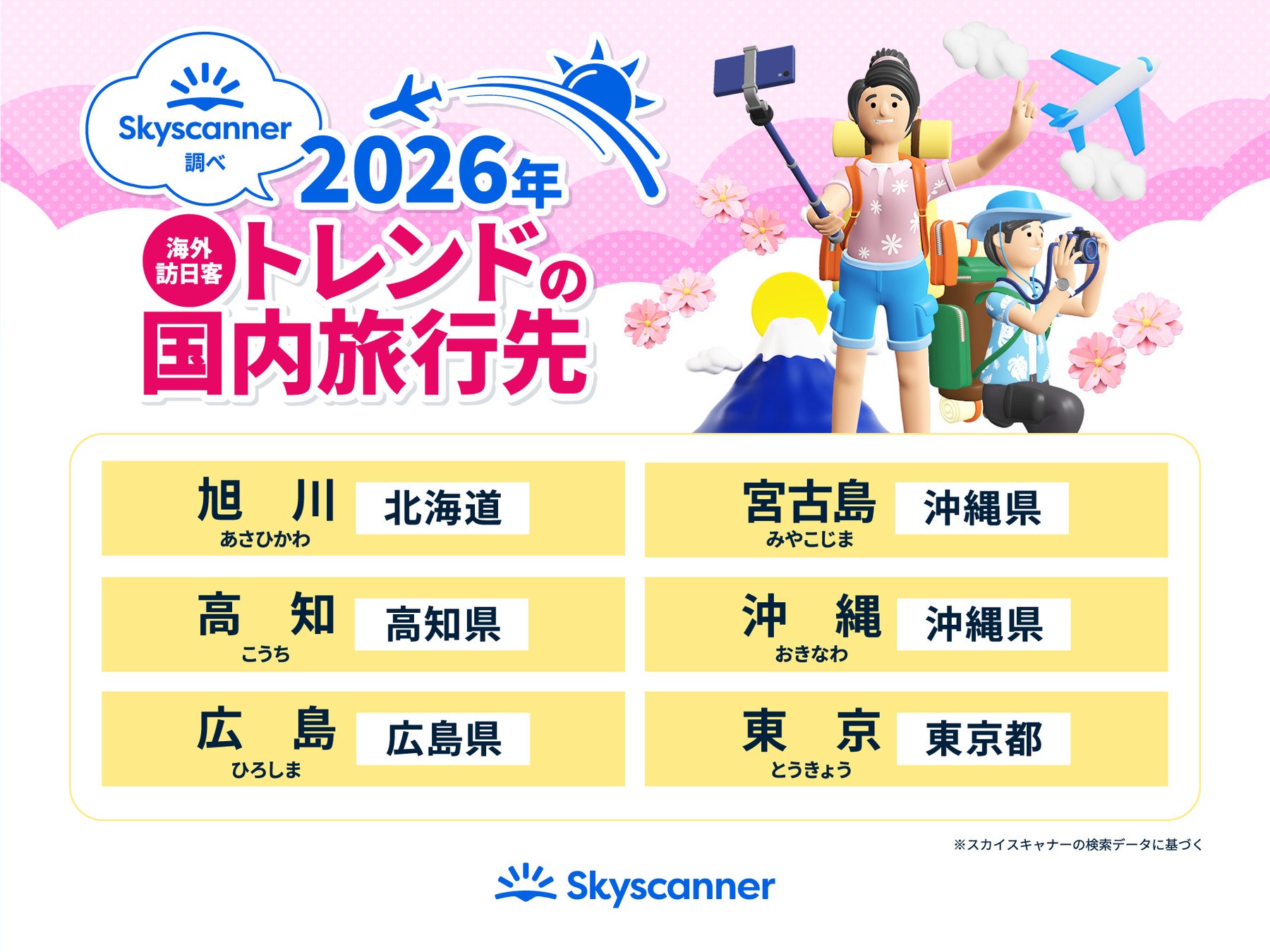 この度、スカイスキャナー独自の検索データ数万件以上を分析し、 日本人旅行者および海外の旅行者、それぞれにおける「2026年 トレンドの “国内”旅行先」を発表します。