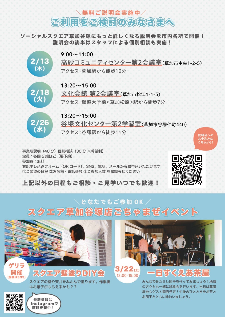【NPO法人ソーシャルデザインワークス主催】SOCIALSQUARE 草加谷塚店無料説明会実施