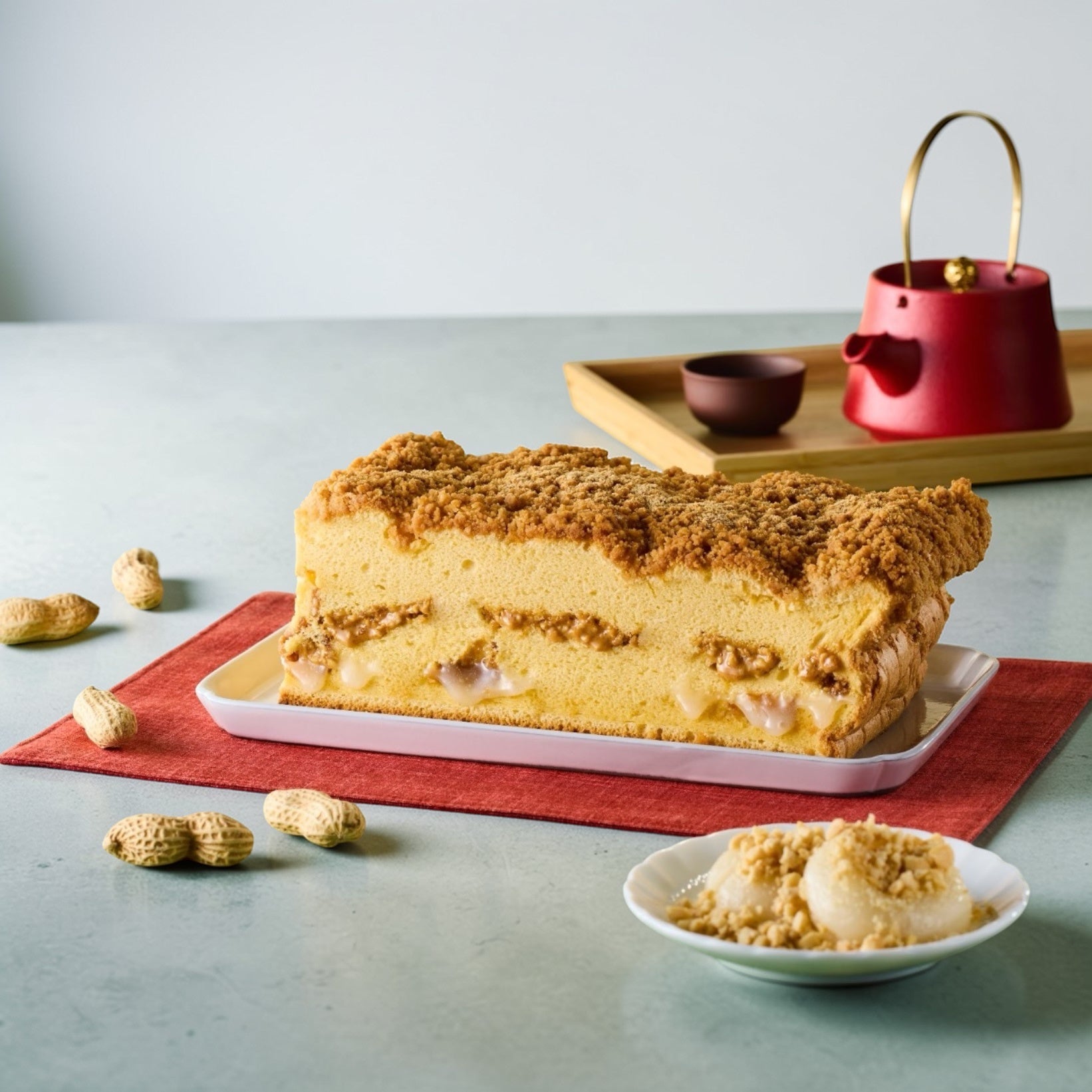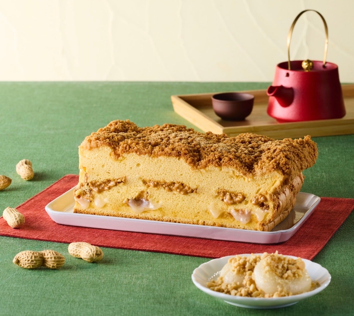 こうした流れの中で、「もちもち」「さくさく」といった食感を取り入れ、台湾のピーナッツ餅をカステラで表現しました。