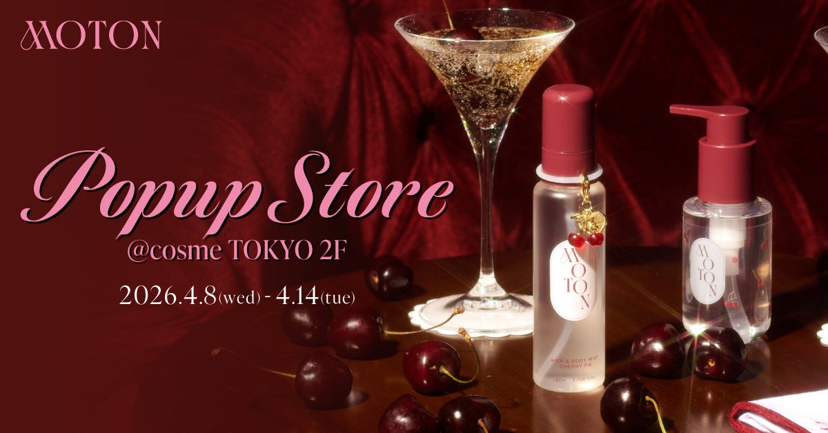 MOTONの新作チェリーパイの香りを体験できるPOPUPを@cosme TOKYOにて2026年4月8日(水)〜2026年4月14日(火)で開催します。